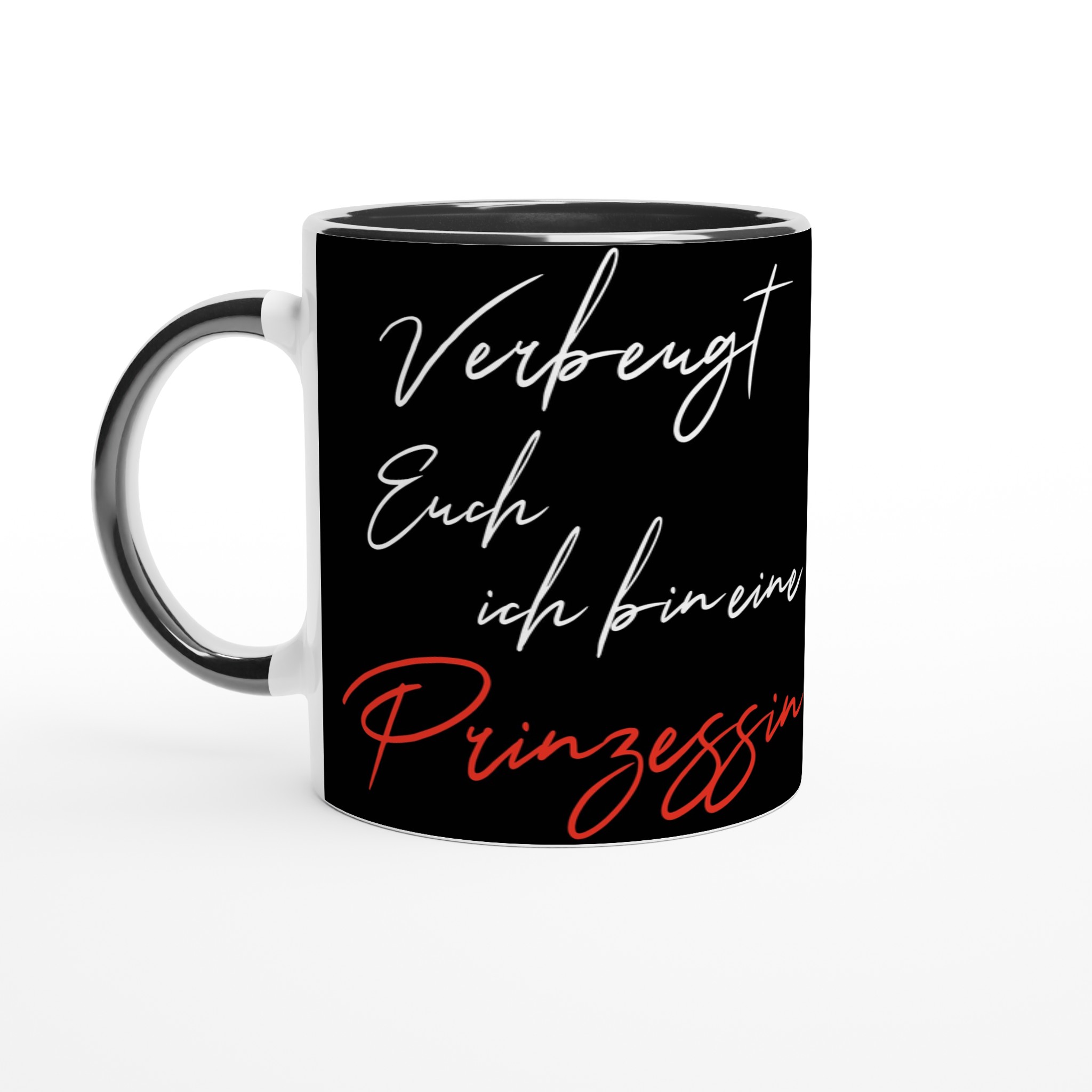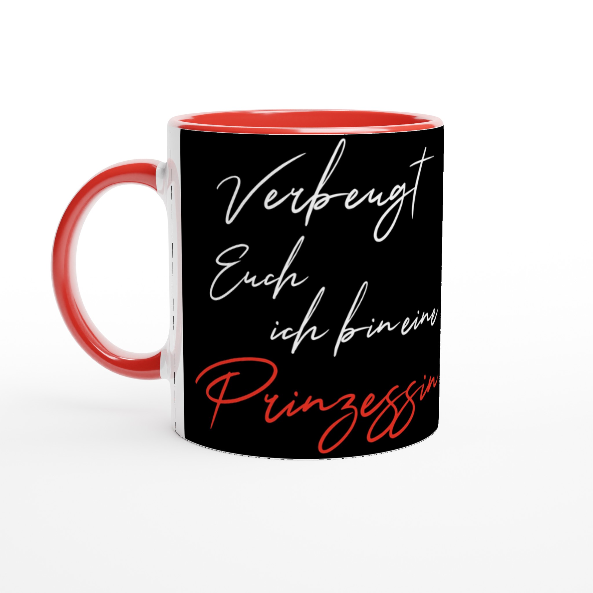 Diese schöne Keramiktasse ist perfekt für jeden Anlass: deinen Kaffee am Morgen, eine heiße Schokolade oder dein Heißgetränk der Wahl. Die Tasse ist glänzend weiß mit einem farbigen Rand, innen, und Griff. Die Drucke kommen auf eine schöne Arte und Weise und lebendig zur Geltung. Der Druck behält seine Qualität und seinen Glanz sowohl in der Mikrowelle als auch in der Spülmaschine.